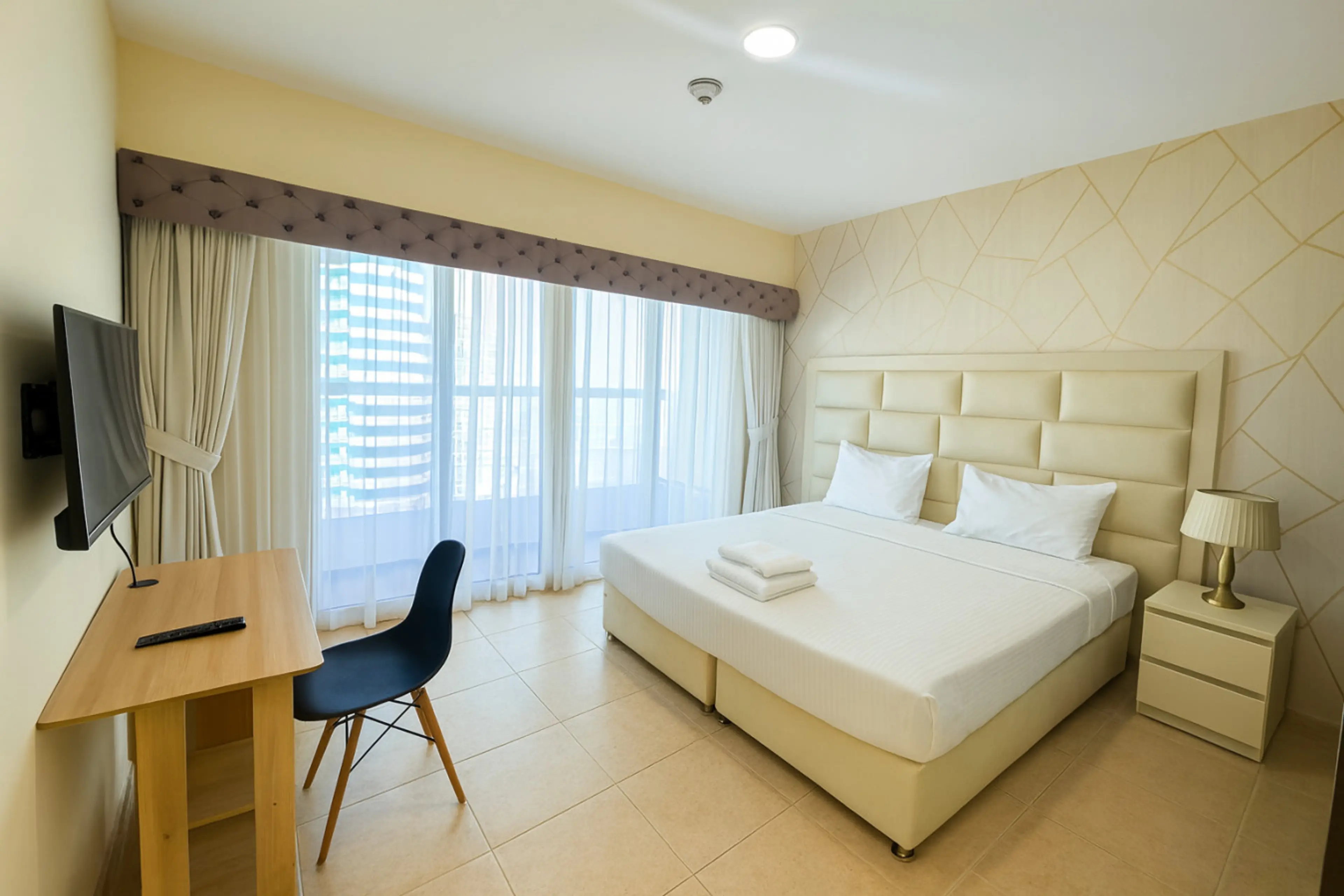 Negative: In the images they shown TV in the room. But TV was not there. When I spoke to the property manager they said that it was broke and they will install new one soon. During our 3 night stay they fail to install a TV.